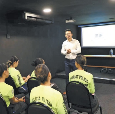 為更好地保障中國游客安全,里約旅游警察局和中國駐里約總領(lǐng)事館合作推出的里約旅游警察中文培訓班日前正式開班。該培訓班分為10個課時,由里約天主教大學孔子學院的教師授課。當?shù)鼐瘑T丹妮爾·克雷斯說,中國游客將為推動里約經(jīng)濟發(fā)展發(fā)揮重要作用,“我愿與同事一起為保障游客安全、促進巴中人民友好往來貢獻力量?!?/p>