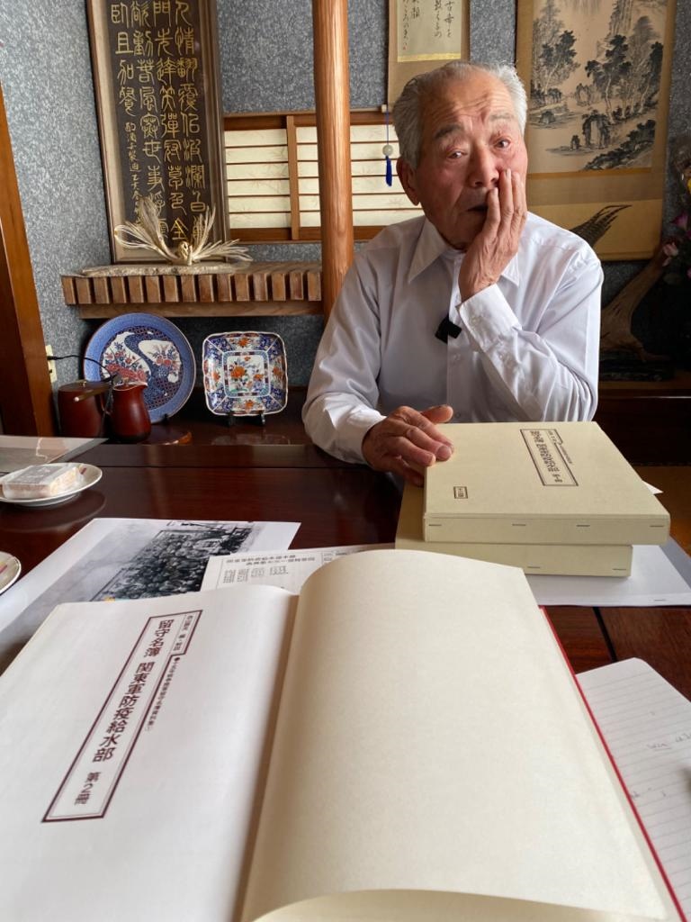 1月13日,在日本長野縣飯?zhí)锸?,原“為了和平的信州?zhàn)爭展實(shí)行委員會(huì)”會(huì)長及“飯?zhí)锸泻推劫Y料收集委員會(huì)”會(huì)長久保田昇在家中接受采訪。新華社記者郭丹攝