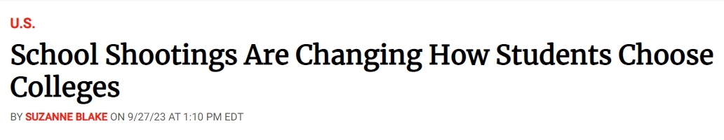 據(jù)報道,在本科錄取階段,學(xué)生通常不僅會考慮一所大學(xué)過去是否應(yīng)對過槍支暴力以及如何應(yīng)對,還會考量學(xué)校的政策是否從一開始就為他們提供了保護。