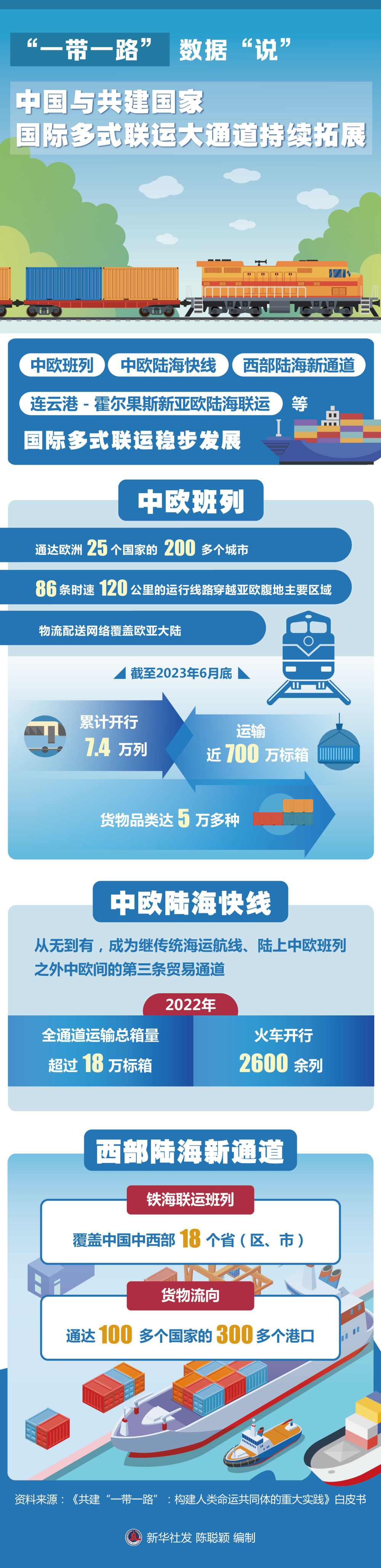 國(guó)際多式聯(lián)運(yùn)大通道持續(xù)拓展。中歐班列、中歐陸海快線、西部陸海新通道、連云港-霍爾果斯新亞歐陸海聯(lián)運(yùn)等國(guó)際多式聯(lián)運(yùn)穩(wěn)步發(fā)展。中歐班列通達(dá)歐洲25個(gè)國(guó)家的200多個(gè)城市,86條時(shí)速120公里的運(yùn)行線路穿越亞歐腹地主要區(qū)域,物流配送網(wǎng)絡(luò)覆蓋歐亞大陸;截至2023年6月底,中歐班列累計(jì)開行7.4萬(wàn)列,運(yùn)輸近700萬(wàn)標(biāo)箱,貨物品類達(dá)5萬(wàn)多種,涉及汽車整車、機(jī)械設(shè)備、電子產(chǎn)品等53大門類,合計(jì)貨值超3000億美元。中歐陸海快線從無(wú)到有,成為繼傳統(tǒng)海運(yùn)航線、陸上中歐班列之外中歐間的第三條貿(mào)易通道,2022年全通道運(yùn)輸總箱量超過(guò)18萬(wàn)標(biāo)箱,火車開行2600余列。西部陸海新通道鐵海聯(lián)運(yùn)班列覆蓋中國(guó)中西部18個(gè)省(區(qū)、市),貨物流向通達(dá)100多個(gè)國(guó)家的300多個(gè)港口。