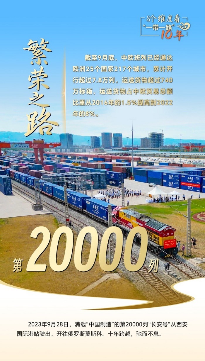 第20000列“長安號”從西安國際港站駛出,給世界送去“中國制造”;中老鐵路突破重山阻隔,成為國際物流的“黃金通道”;蒙內(nèi)鐵路聯(lián)通東西,是東非鐵路網(wǎng)的開端,更是一條充滿希望的經(jīng)濟走廊……一個個合作豐碑,搭建起高效的貿(mào)易通道網(wǎng)絡(luò)平臺,助力各國走好走穩(wěn)“一帶一路”這條繁榮之路。