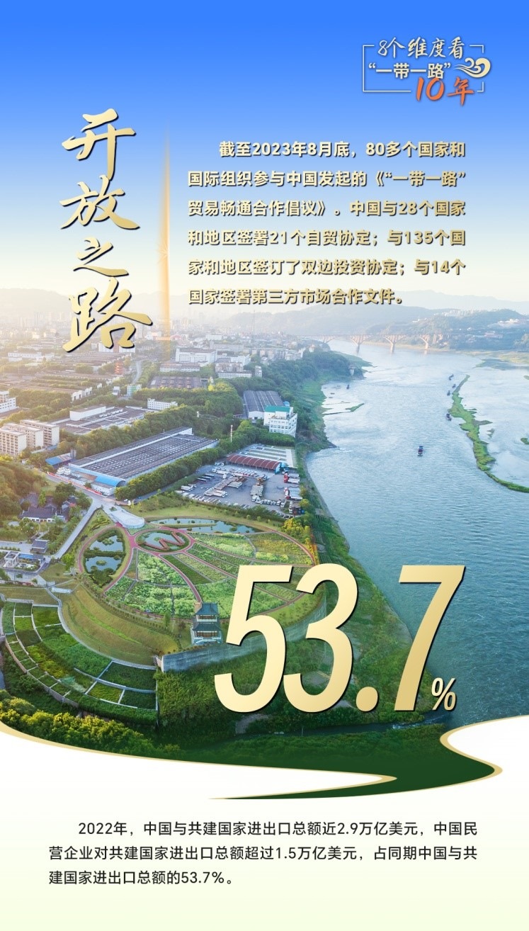 2023年是共建“一帶一路”倡議提出十周年,也是全面貫徹落實黨的二十大精神的開局之年。黨的二十大報告提出:“推動共建‘一帶一路’高質(zhì)量發(fā)展。”從新起點再出發(fā),高質(zhì)量共建“一帶一路”,在和平之路、繁榮之路、開放之路、創(chuàng)新之路、文明之路、健康之路、綠色之路和數(shù)字之路上繼續(xù)扎實推進,攜手世界合作共贏、共同發(fā)展,擘畫攜手共建人類命運共同體新藍圖。