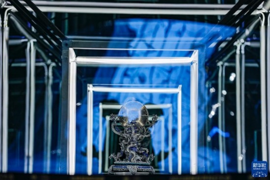 10月18日,在第81屆世界科幻大會主場館——成都科幻館內(nèi),兩名觀眾從藝術(shù)裝置作品《共生紀元》前走過。