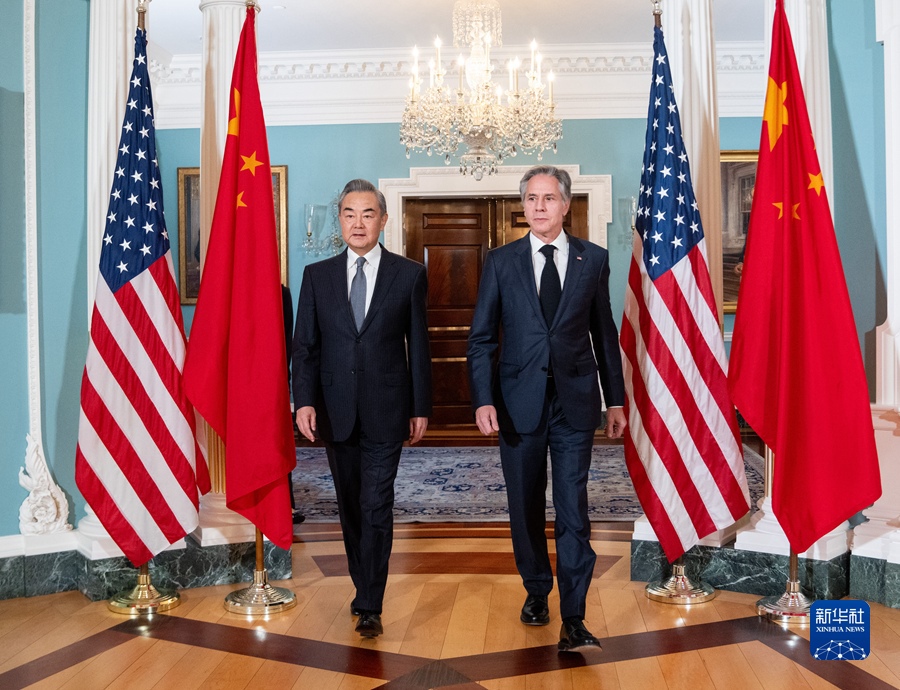10月26日,中共中央政治局委員、外交部長王毅在應(yīng)邀訪美期間在華盛頓同美國國務(wù)卿布林肯舉行會談。新華社發(fā)
