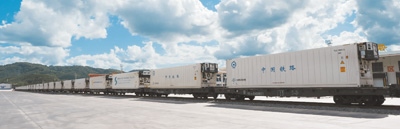 冷藏貨運(yùn)班列駛?cè)胫袊ズ╄F路口岸。
