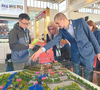 外國參展商在了解節(jié)水灌溉系統(tǒng)。本報(bào)記者 呂鐘正攝