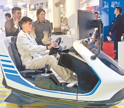 工作人員在展示遠(yuǎn)程駕駛平臺(tái)。本報(bào)記者 施 芳攝