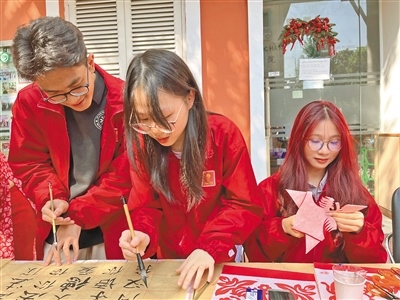12月8日,在河內(nèi)大學(xué)孔子學(xué)院舉行的文化體驗活動中,越南大學(xué)生體驗中國書法和剪紙。本報記者 張遠(yuǎn)南攝