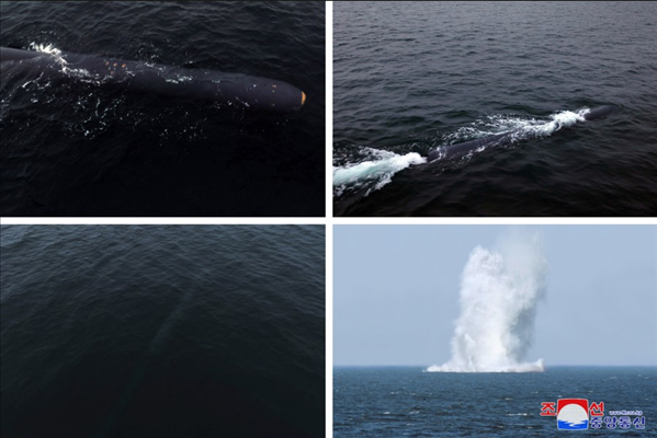 去年3月,朝鮮進(jìn)行了一系列軍事訓(xùn)練活動(dòng),包括新型水下攻擊武器系統(tǒng)試驗(yàn),其中,“海嘯”的核無(wú)人潛水攻擊艇首次亮相。試驗(yàn)在朝鮮咸鏡南道利原郡海岸進(jìn)行,在80米至150米深度潛航了約59小時(shí),最后到達(dá)假想敵人港口的洪原灣水域目標(biāo)點(diǎn)爆炸。一個(gè)月后朝鮮公開(kāi)了“海嘯-2”型核無(wú)人潛水攻擊艇,朝方稱(chēng),該艇進(jìn)行了71小時(shí)、1000千米的潛航試驗(yàn),驗(yàn)證了潛水式戰(zhàn)略武器系統(tǒng)的可靠性和致命打擊能力。