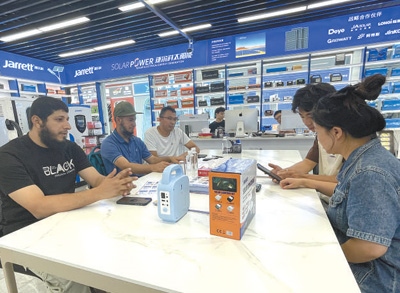 最近,埃馬紐埃爾又開始關(guān)注新能源產(chǎn)品。“喀麥隆一些地方存在電力短缺、供電不穩(wěn)的問題,很多當?shù)厝讼M夷茉谥袊业胶线m的產(chǎn)品。”為此,他把目標瞄準了義烏國際商貿(mào)城的新能源產(chǎn)品市場,尋找到一些適合喀麥隆的光伏設(shè)備?!爸袊男履茉串a(chǎn)品性能可靠、性價比高,產(chǎn)品品類覆蓋領(lǐng)域廣泛?!卑qR紐埃爾表示,大到醫(yī)療機構(gòu),小到禽畜養(yǎng)殖場,中國光伏設(shè)備供應的電力有助于滿足當?shù)孛癖娚a(chǎn)生活的用電需求。