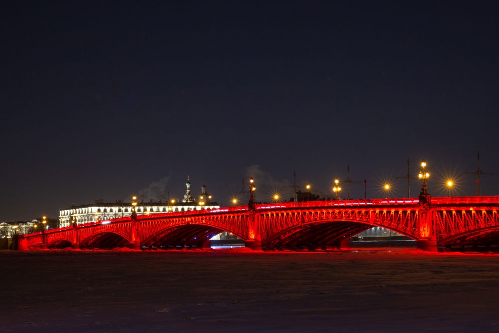 2月9日,俄羅斯圣彼得堡市中心的圣三一橋亮起“中國紅”,慶祝中國龍年春節(jié)。新華社發(fā)(莫京娜攝)