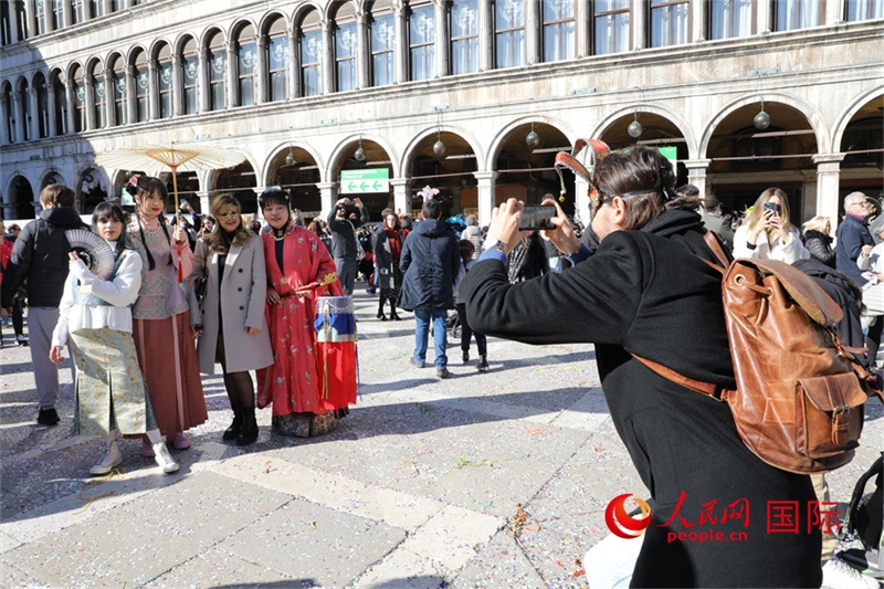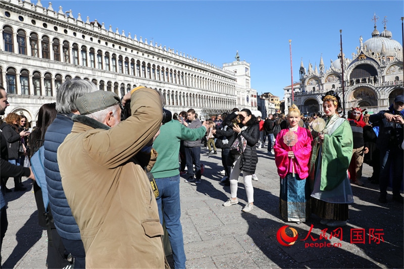 人民網(wǎng)威尼斯2月14日電 (記者謝亞宏)2月13日,為期兩周的年度威尼斯狂歡節(jié)迎來最后一天,期間舉行了威尼斯大學(xué)孔子學(xué)院與蘇州絲綢博物館合作主辦的漢服巡游活動。