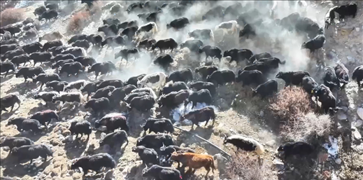 近日,新疆阿克陶縣布倫口鄉(xiāng)蓋孜村的牧民護送牦牛由海拔3700米轉場至海拔4100米的草場。3000余頭牦牛翻山越嶺,場面壯觀。目前,牦牛已安全抵達目的地。