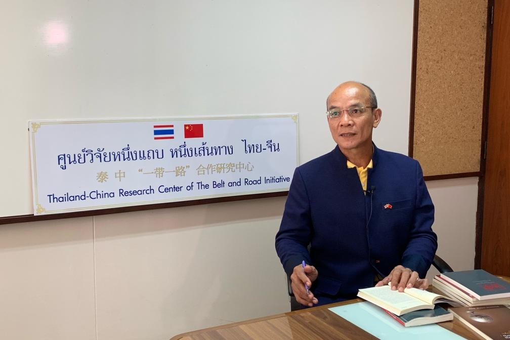 2019年4月17日,泰國(guó)國(guó)家研究院泰中戰(zhàn)略研究中心主任蘇拉西·塔納唐在曼谷接受新華社記者專訪。新華社記者楊舟攝