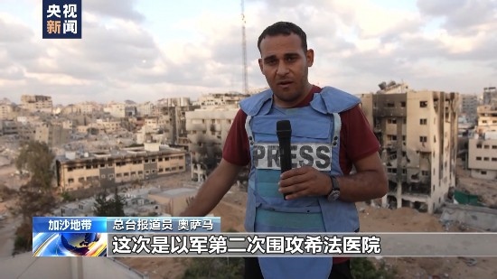總臺(tái)報(bào)道員 奧薩馬:我身后就是加沙城的希法醫(yī)院,此前以色列軍隊(duì)襲擊了這里,目前該醫(yī)院已經(jīng)停止服務(wù)。以軍此前的襲擊造成大量民眾身亡,還有一些人被捕,醫(yī)院設(shè)施被毀并發(fā)生火災(zāi),之后加沙地帶衛(wèi)生部門(mén)宣布,該醫(yī)院完全停止服務(wù)。我們注意到,這里現(xiàn)在沒(méi)有醫(yī)務(wù)人員,沒(méi)有手術(shù)室,也無(wú)法提供任何類(lèi)型的醫(yī)療服務(wù)。