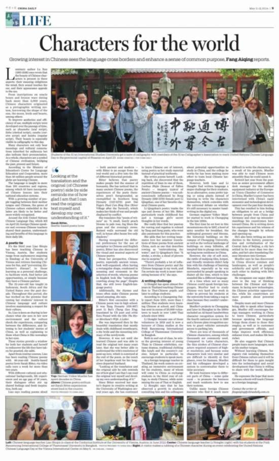 中外語(yǔ)言交流合作中心與中國(guó)日?qǐng)?bào)網(wǎng)聯(lián)合發(fā)起的“國(guó)際中文日”系列線(xiàn)上活動(dòng)融合線(xiàn)下打卡體驗(yàn)、產(chǎn)出豐富多彩的中文日周邊文創(chuàng)和主題報(bào)道,以創(chuàng)意設(shè)計(jì)全方位、立體化地展現(xiàn)了“中文之美”,通過(guò)展示不同國(guó)家中文教育者和學(xué)習(xí)者的中文故事,也展現(xiàn)了文明互鑒、開(kāi)放合作和文化交流的重要性。