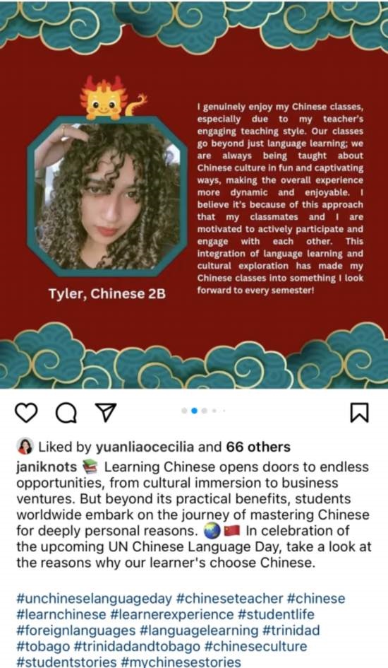 另外,在互聯(lián)網(wǎng)的浸潤(rùn)下成長(zhǎng)起來(lái)的海外“Z世代”也對(duì)中文和中國(guó)文化熱情洋溢。阿富汗的中文學(xué)習(xí)者Sediqi Khawaja Abdul Nasir認(rèn)為,“中文的學(xué)習(xí)不僅僅是掌握詞匯和語(yǔ)法,更是理解一個(gè)國(guó)家和一個(gè)民族的心靈?!碧亓⒛徇_(dá)和多巴哥的Janine Lutchman從中文學(xué)習(xí)者成長(zhǎng)為本土教師,分享著她感染學(xué)生學(xué)習(xí)中文的點(diǎn)滴故事。此外,緬甸籍學(xué)生黃俊杰Thet Paing Phyo、土耳其籍中文學(xué)習(xí)者王愛(ài)英Ayperi ztürk和加納籍中文學(xué)習(xí)者王富健Richmond Ayawuli、格林納達(dá)的學(xué)生們等世界各地的青年,都在活動(dòng)中為大家?guī)?lái)千千萬(wàn)萬(wàn)動(dòng)人的“中文故事”。