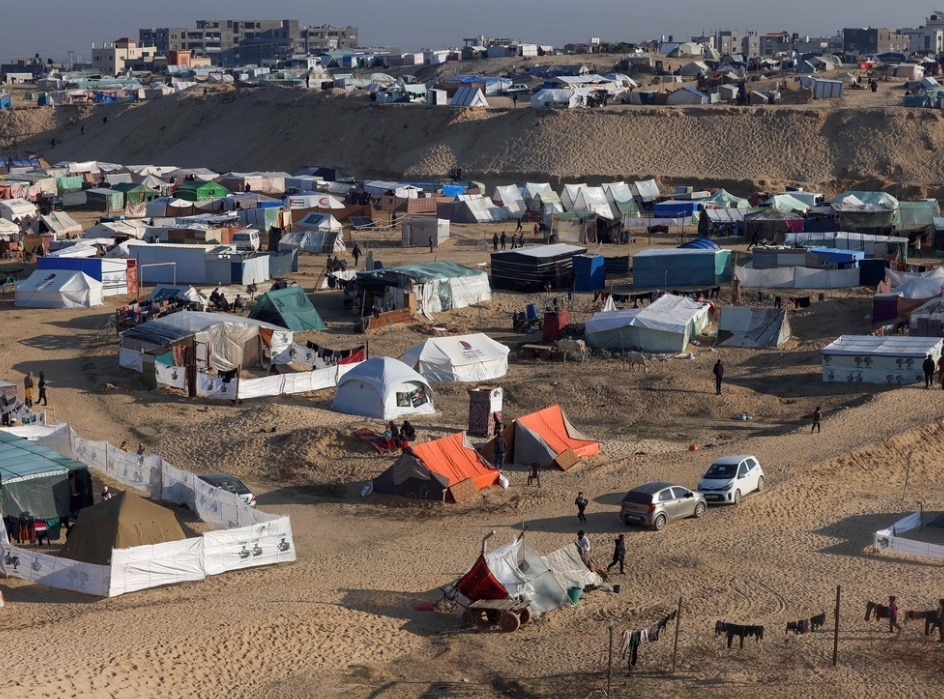 加沙地帶南部,一處流離失所者營地。(資料圖)