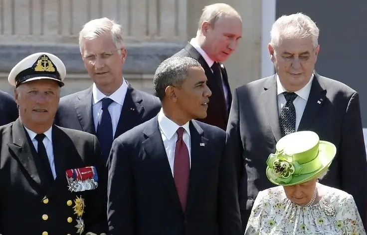 十年前,普京與美國(guó)時(shí)任總統(tǒng)貝拉克·奧巴馬、法國(guó)時(shí)任總統(tǒng)弗朗索瓦·奧朗德、英國(guó)時(shí)任首相戴維·卡梅倫、德國(guó)時(shí)任總理安格拉·默克爾等政要在諾曼底登陸70周年紀(jì)念活動(dòng)“同框”。