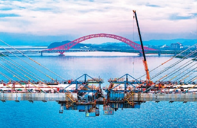 近日,浙江寧波舟山港六橫公路大橋一期項(xiàng)目梅山水道橋即將合龍。該大橋建成后,可實(shí)現(xiàn)六橫島、佛渡島、梅山島三島港區(qū)、產(chǎn)業(yè)聯(lián)動(dòng)發(fā)展,推動(dòng)甬舟一體化駛?cè)搿翱旌降馈?。胡學(xué)軍攝(人民視覺(jué))