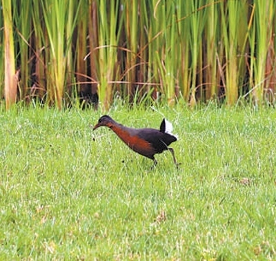 一只正在友誼廣場覓食的魯氏秧雞。 本報(bào)記者 沈小曉攝