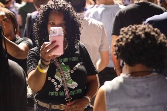 2024年10月25日,美國民主黨總統(tǒng)候選人哈里斯在得克薩斯州休斯敦舉行競選集會,聚焦女性生育自主權(quán)。這是一名女子在集會上自拍。新華社記者徐劍梅攝