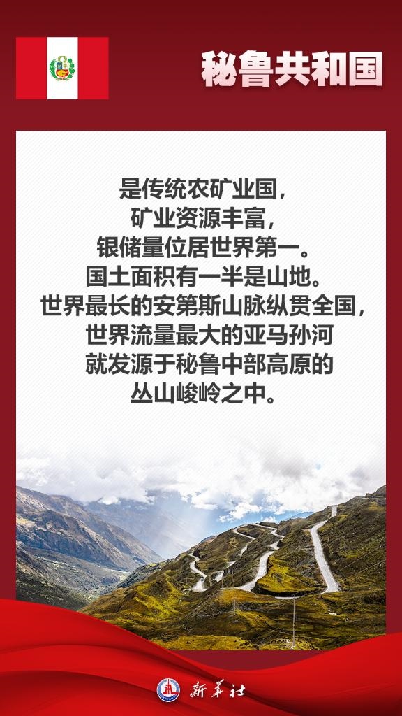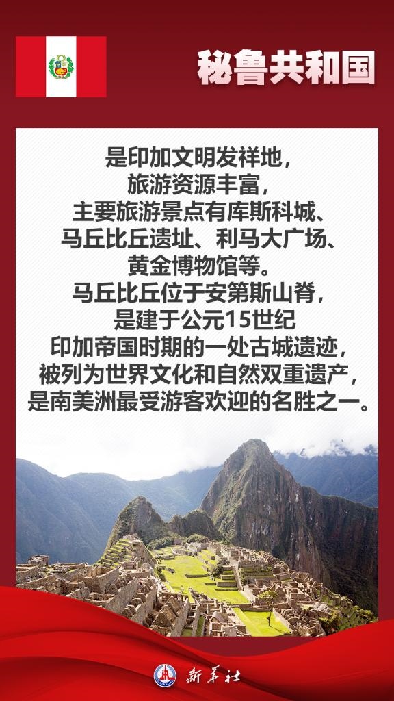 應秘魯共和國總統(tǒng)博魯阿爾特邀請,國家主席習近平將于11月13日至17日赴利馬出席亞太經合組織第三十一次領導人非正式會議并對秘魯進行國事訪問。秘魯位于南美洲西部,是印加文明發(fā)祥地,也是最早同新中國建交的拉美國家之一。關于秘魯,七張海報帶你了解更多——