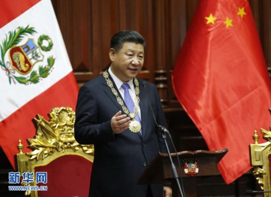 2016年11月21日,國(guó)家主席習(xí)近平在秘魯國(guó)會(huì)發(fā)表題為《同舟共濟(jì)、揚(yáng)帆遠(yuǎn)航,共創(chuàng)中拉關(guān)系美好未來》的重要演講。新華社記者 鞠 鵬攝