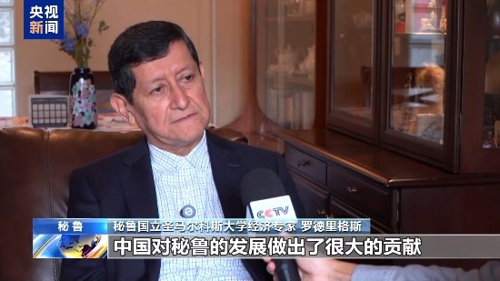 秘魯國(guó)立圣馬爾科斯大學(xué)經(jīng)濟(jì)專家 羅德里格斯:中國(guó)對(duì)秘魯?shù)陌l(fā)展做出了很大的貢獻(xiàn)。首先中國(guó)從我們這里購(gòu)買產(chǎn)品,其次中國(guó)向我們提供了很多產(chǎn)品,有價(jià)格實(shí)惠的手機(jī)、汽車,提高了許多人的生活水平。