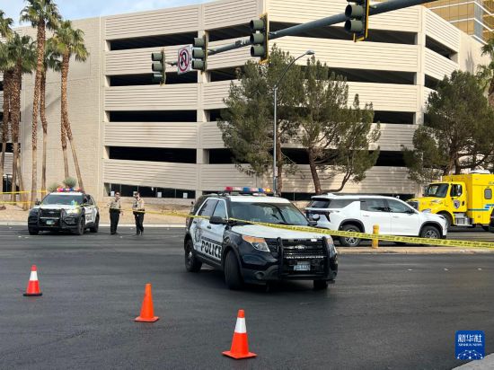 1月1日,在美國內華達州拉斯維加斯,警方封鎖發(fā)生電動汽車爆炸事件的特朗普酒店門前區(qū)域。新華社記者 譚晶晶 攝
