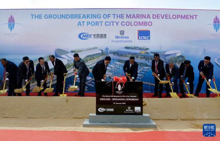 1月10日,嘉賓為斯里蘭卡科倫坡港口城游艇碼頭商業(yè)項目奠基。