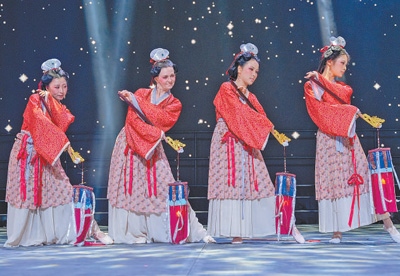 在阿聯(lián)酋華僑華人第十一屆春節(jié)聯(lián)歡晚會上,華僑華人和當(dāng)?shù)孛癖姽餐堇[中國古代迎春場景。