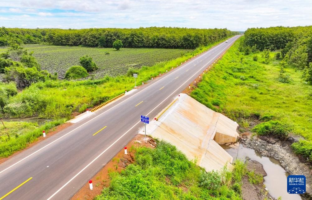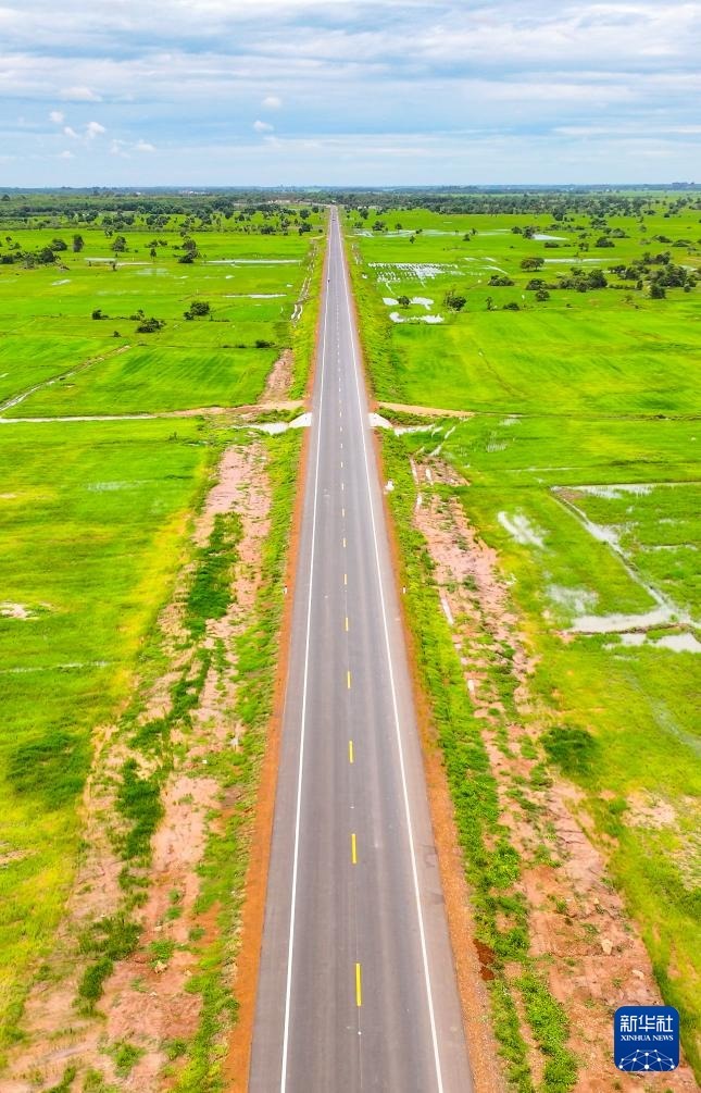 這是2024年7月14日在柬埔寨特本克蒙省拍攝的71C號國家公路(無人機照片)。新華社發(fā)(尼多拉攝)
