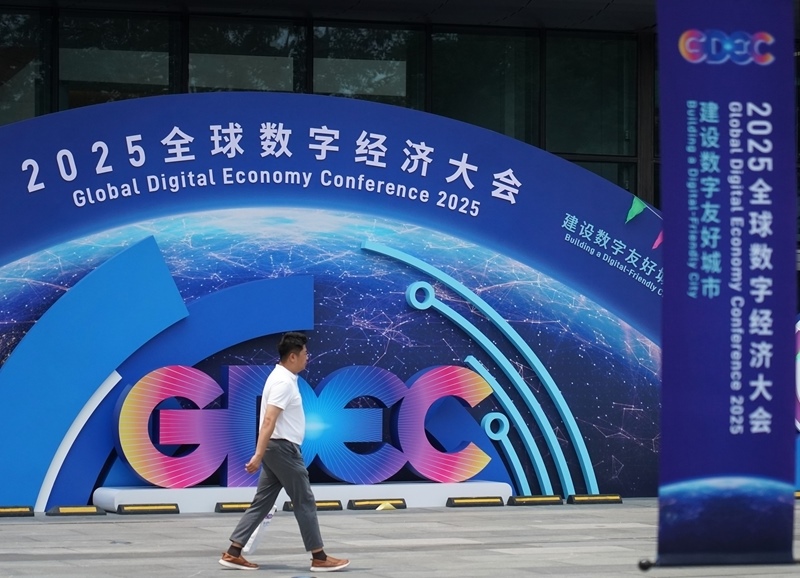 這是7月2日拍攝的2025全球數(shù)字經(jīng)濟大會標識。