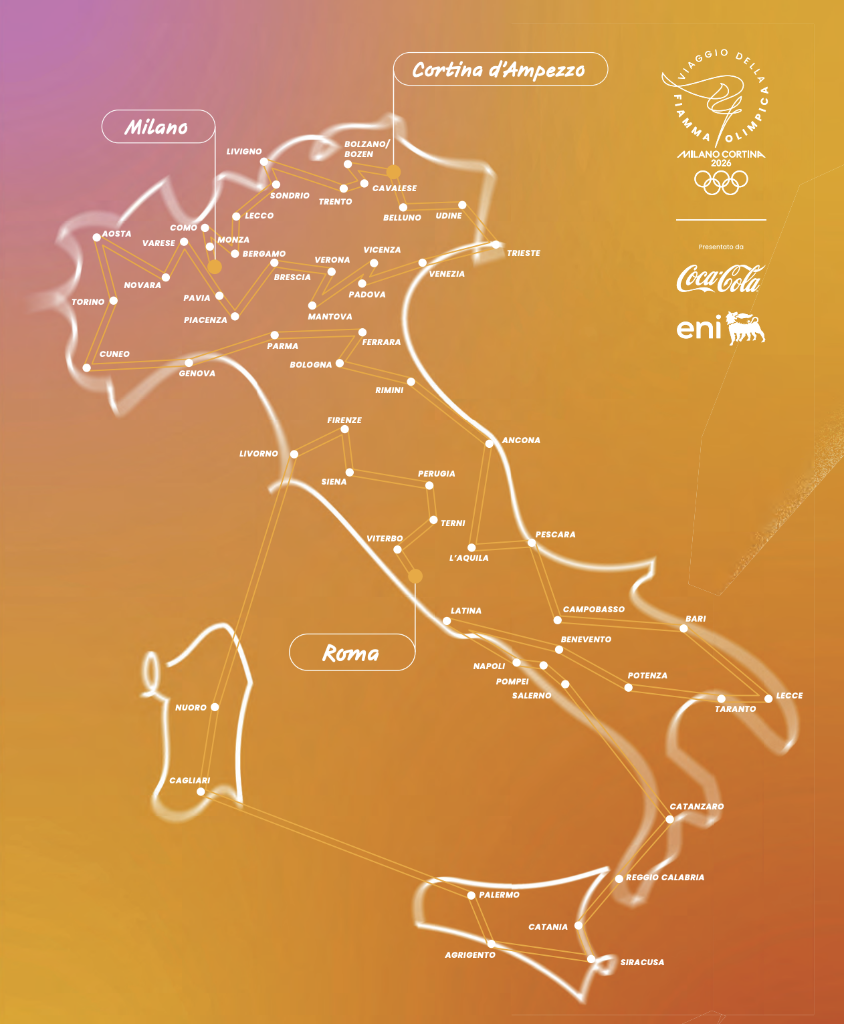 米蘭冬奧會火炬?zhèn)鬟f路線圖。圖源:米蘭冬奧組委