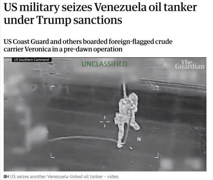 據(jù)報(bào)道,美國南方司令部在社交媒體上表示,一艘名為“韋羅妮卡”號(hào)的油輪,在黎明前的一次行動(dòng)中被美國海軍人員登船檢查。