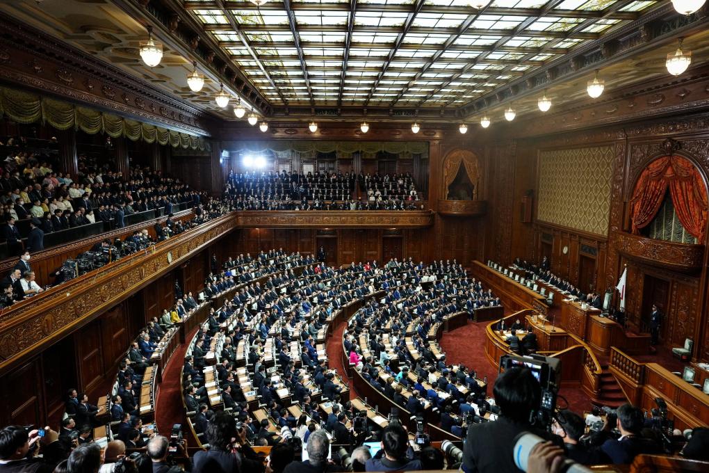 這是1月23日在日本東京拍攝的國會眾議院全體會議現(xiàn)場。日本眾議院議長額賀福志郎當天在眾議院全體會議上宣讀解散詔書,日本眾議院正式解散。新華社記者賈浩成攝