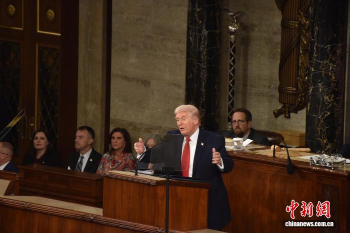 當(dāng)?shù)貢r間2月24日晚,美國總統(tǒng)特朗普在國會參眾兩院聯(lián)席會議上發(fā)表國情咨文講話,聚焦經(jīng)濟(jì)、移民等議題。這是特朗普在本總統(tǒng)任期內(nèi)首次發(fā)表國情咨文。 記者 沙晗汀 攝