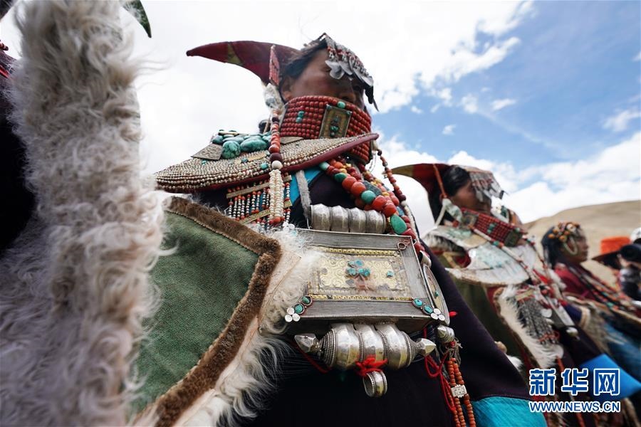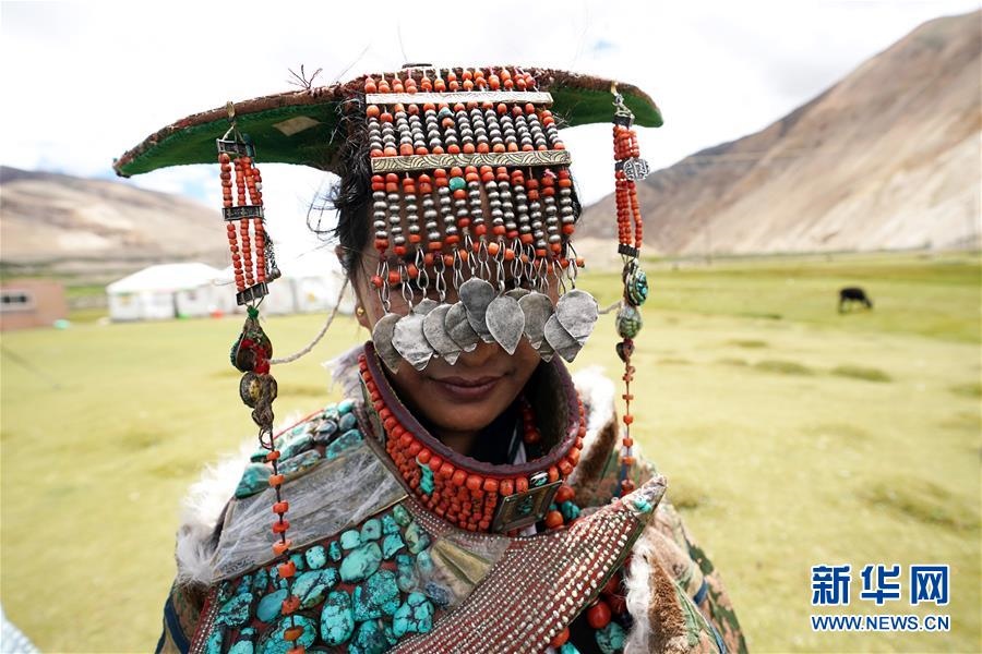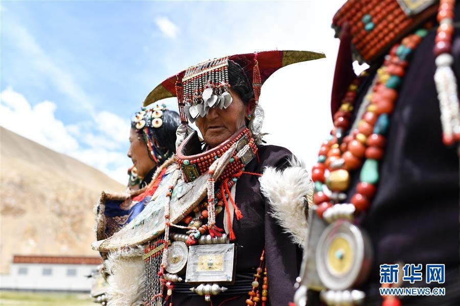 這是7月28日拍攝的身著普蘭服飾的普蘭縣科迦村村民。在西藏阿里地區(qū)普蘭縣,至今保留著獨(dú)特的藏族服飾——普蘭服飾。據(jù)了解,普蘭服飾已有1000多年的歷史,其中最精美、最獨(dú)特的是婦女的“孔雀”服飾,一套重達(dá)20多公斤,裝飾有黃金、白銀、蜜蠟、珊瑚、綠松石等,堪稱“穿在身上的千年歷史”。新華社記者詹彥攝