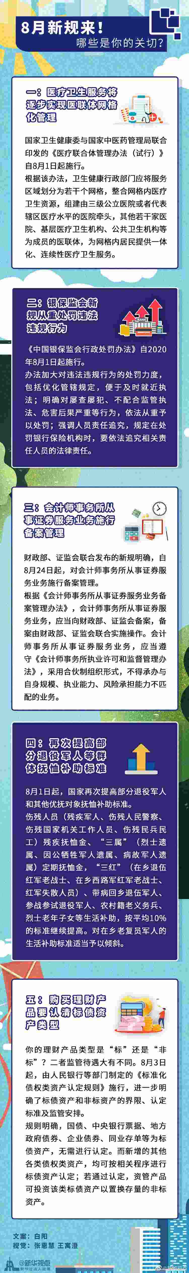 居民看病將逐步實(shí)現(xiàn)醫(yī)聯(lián)體網(wǎng)格化服務(wù)、銀保監(jiān)會新規(guī)進(jìn)一步提升金融違法違規(guī)成本、部分退役軍人和其他優(yōu)撫對象撫恤補(bǔ)助標(biāo)準(zhǔn)再次提高……這個8月,又有一批新規(guī)開始施行,影響你我的生活。