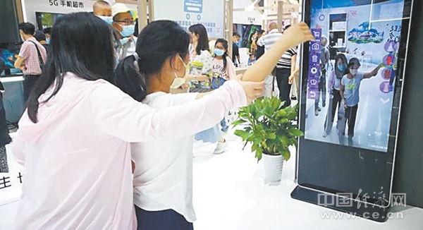 在2020服貿(mào)會(huì)5G通信服務(wù)專題展區(qū),觀眾正體驗(yàn)“AR試衣鏡”。經(jīng)濟(jì)日?qǐng)?bào)-中國(guó)經(jīng)濟(jì)網(wǎng)記者崔國(guó)強(qiáng)攝