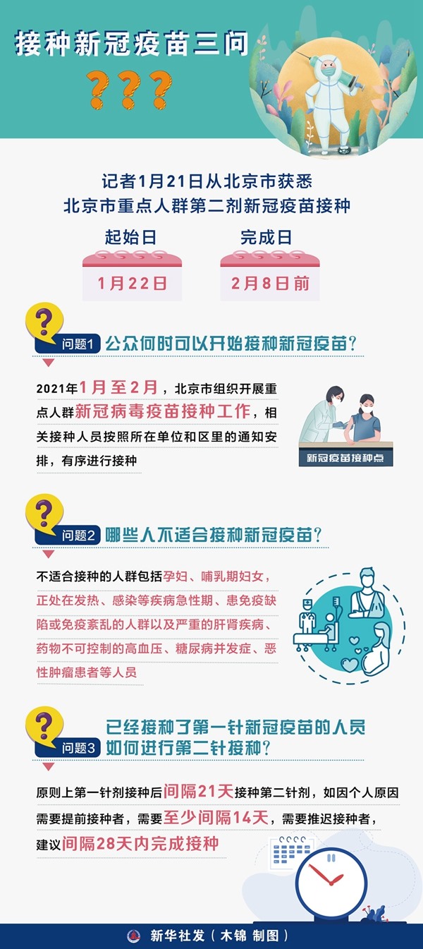 公眾何時可以接種新冠肺炎疫苗?哪些人不適合接種?如何進行第二劑接種?北京市有關(guān)專家進行了解答。