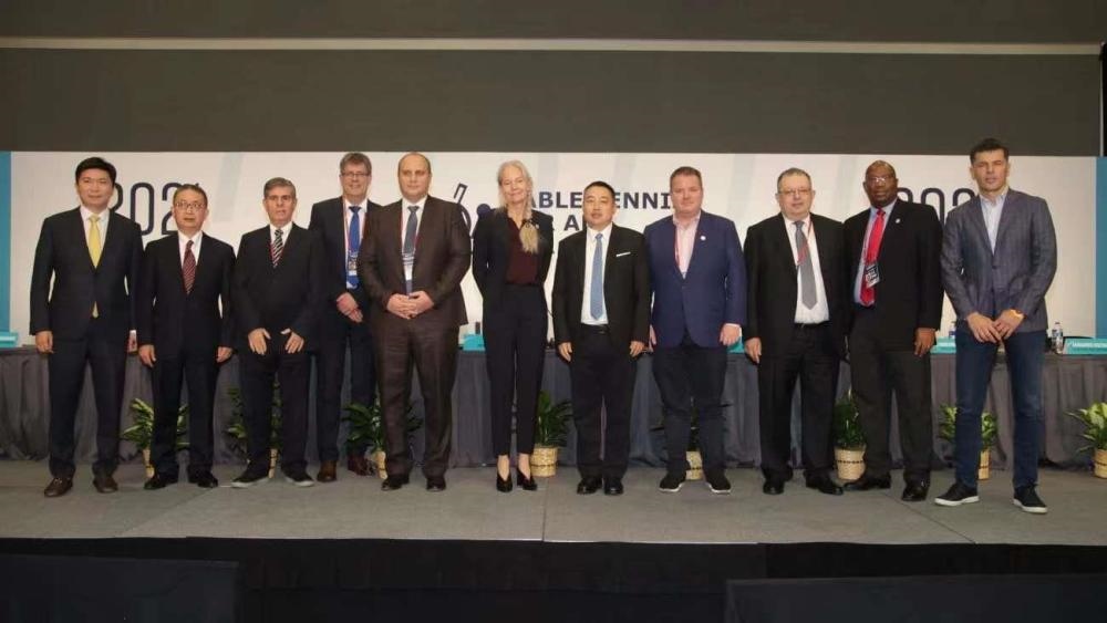 當(dāng)?shù)貢r(shí)間11月24日,2021國(guó)際乒聯(lián)代表大會(huì)在美國(guó)休斯敦召開。WTT世界乒乓球職業(yè)大聯(lián)盟理事會(huì)主席、中國(guó)乒協(xié)主席劉國(guó)梁成功當(dāng)選國(guó)際乒乓球聯(lián)合會(huì)執(zhí)行副主席。(記者 許弢)