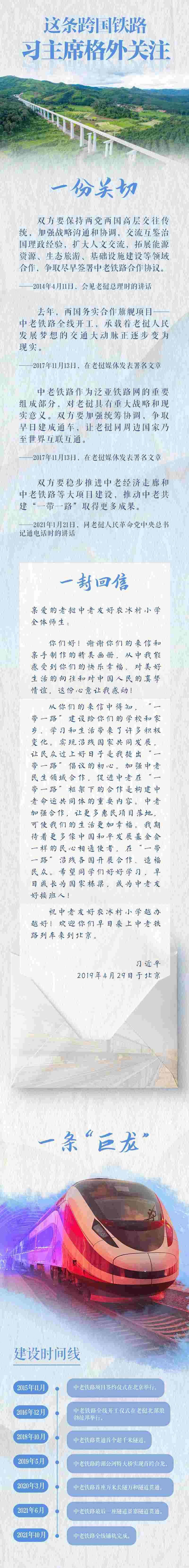 中老鐵路北起中國昆明,南至老撾萬象,全長1000多公里。這條承載著友誼、科技、綠色、開放的跨國鐵路,是我國“一帶一路”倡議與老撾“變陸鎖國為陸聯(lián)國”戰(zhàn)略對接的重要項目,也是“一帶一路”倡議提出以后,首條以中方為主投資建設(shè)、全線采用中國技術(shù)標準、使用中國設(shè)備并與中國鐵路網(wǎng)直接聯(lián)通的跨國鐵路。對于這條鐵路,習近平主席一直格外關(guān)注。他與老撾高層多次就中老鐵路建設(shè)進行深入溝通,并給老撾萬象中老友好農(nóng)冰村小學師生回信,歡迎他們早日乘上中老鐵路列車來到北京。