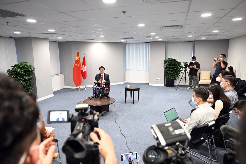 香港特別行政區(qū)候任行政長官李家超在香港接受記者采訪。新華社記者 金良快 攝