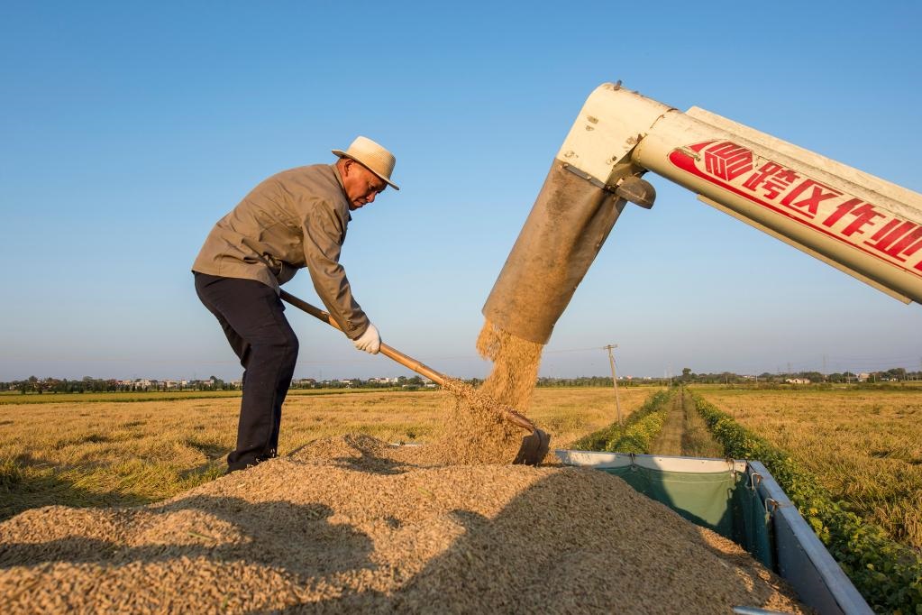在蕪湖市繁昌區(qū)平鋪鎮(zhèn),村民將收割的水稻裝車(chē)。新華社發(fā)(肖本祥 攝)