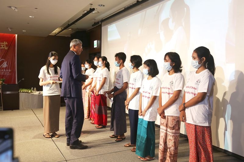 中國銀行獎(jiǎng)助學(xué)金項(xiàng)目由中國銀行出資,中國鄉(xiāng)村發(fā)展基金會(huì)執(zhí)行。中國駐緬大使陳海、緬甸央行行長丹丹瑞等出席儀式,中銀香港副總裁陳文、中國鄉(xiāng)村發(fā)展基金會(huì)秘書長陳紅濤等線上參會(huì)。