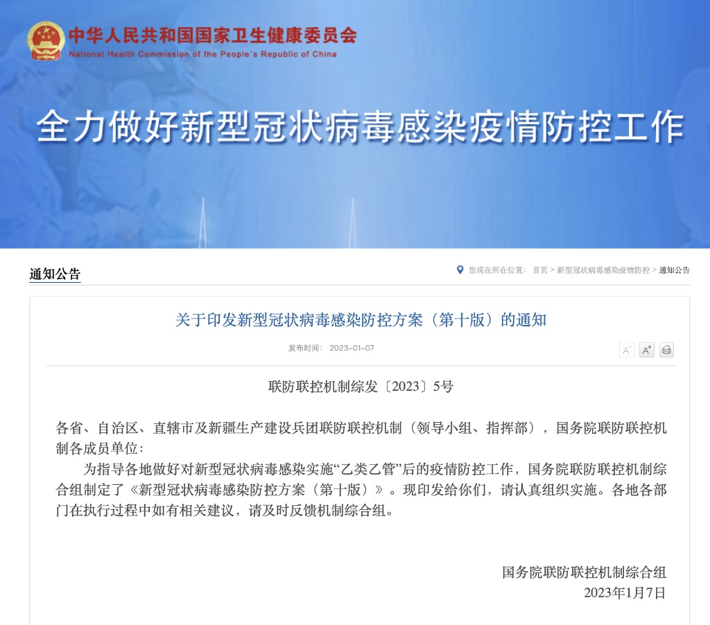新華社北京1月7日電 國務(wù)院聯(lián)防聯(lián)控機(jī)制綜合組1月7日印發(fā)《新型冠狀病毒感染防控方案(第十版)》。新版防控方案倡導(dǎo)疫苗接種和個人防護(hù),調(diào)整了傳染源管理方式和檢測策略,優(yōu)化了重點環(huán)節(jié)防控,并明確在疫情流行期間采取緊急防控措施。