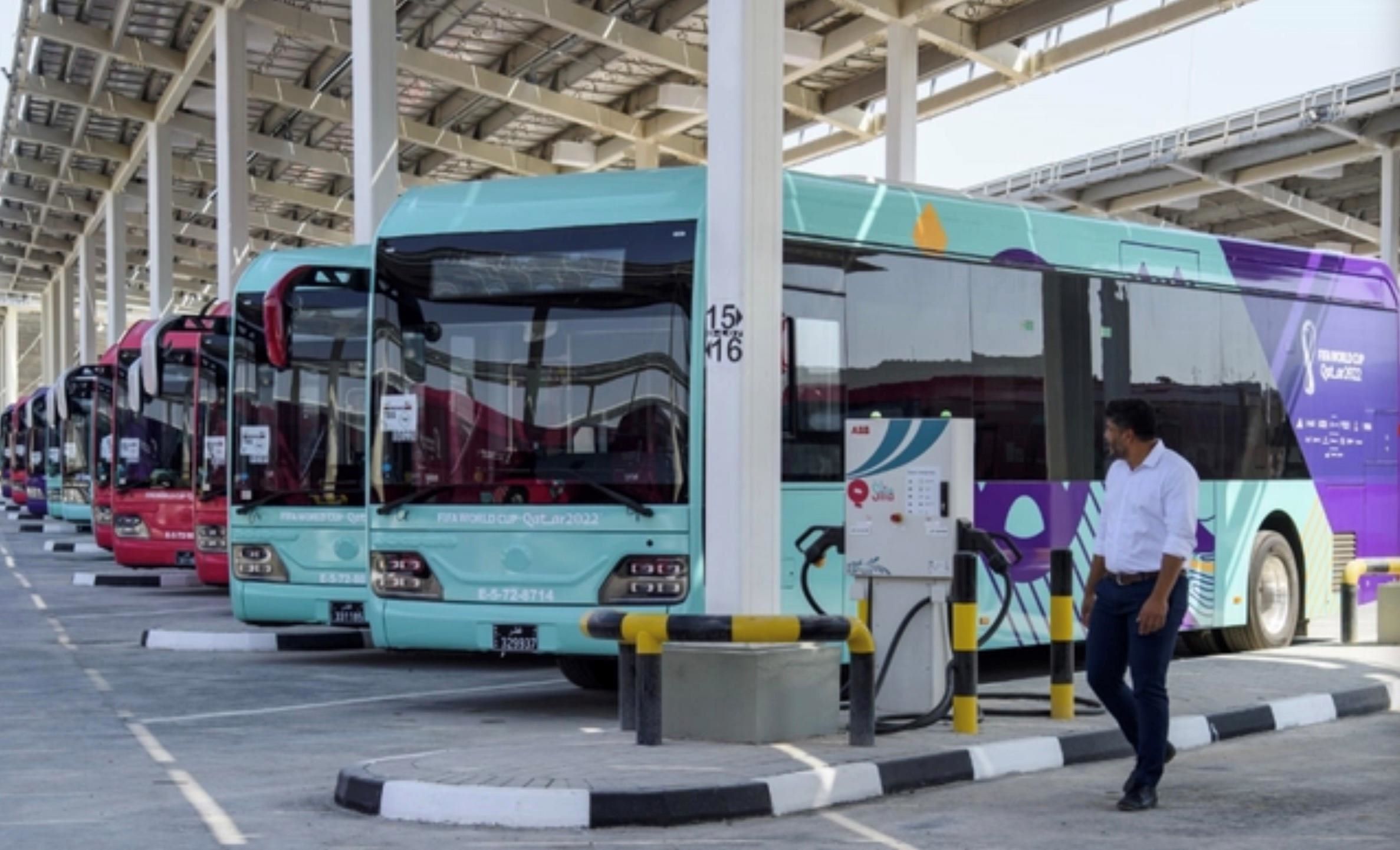 2022年卡塔爾世界杯期間,一輛輛五彩斑斕的大巴車,滿載球迷穿梭在首都多哈街頭。這些大巴車的很大一部分來自中國。這支中國新能源“綠色車隊”成為保障世界杯交通服務的主力軍。