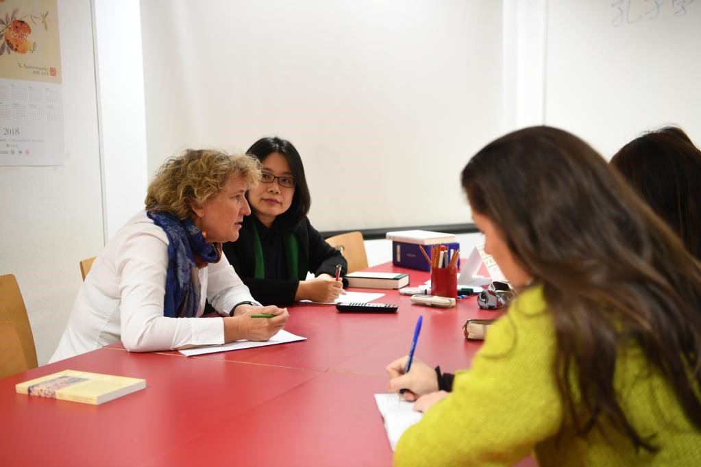 2018年11月13日,在西班牙南部小城格拉納達(dá),雷林科教授(左一)在格拉納達(dá)大學(xué)孔子學(xué)院參加教學(xué)工作會議。